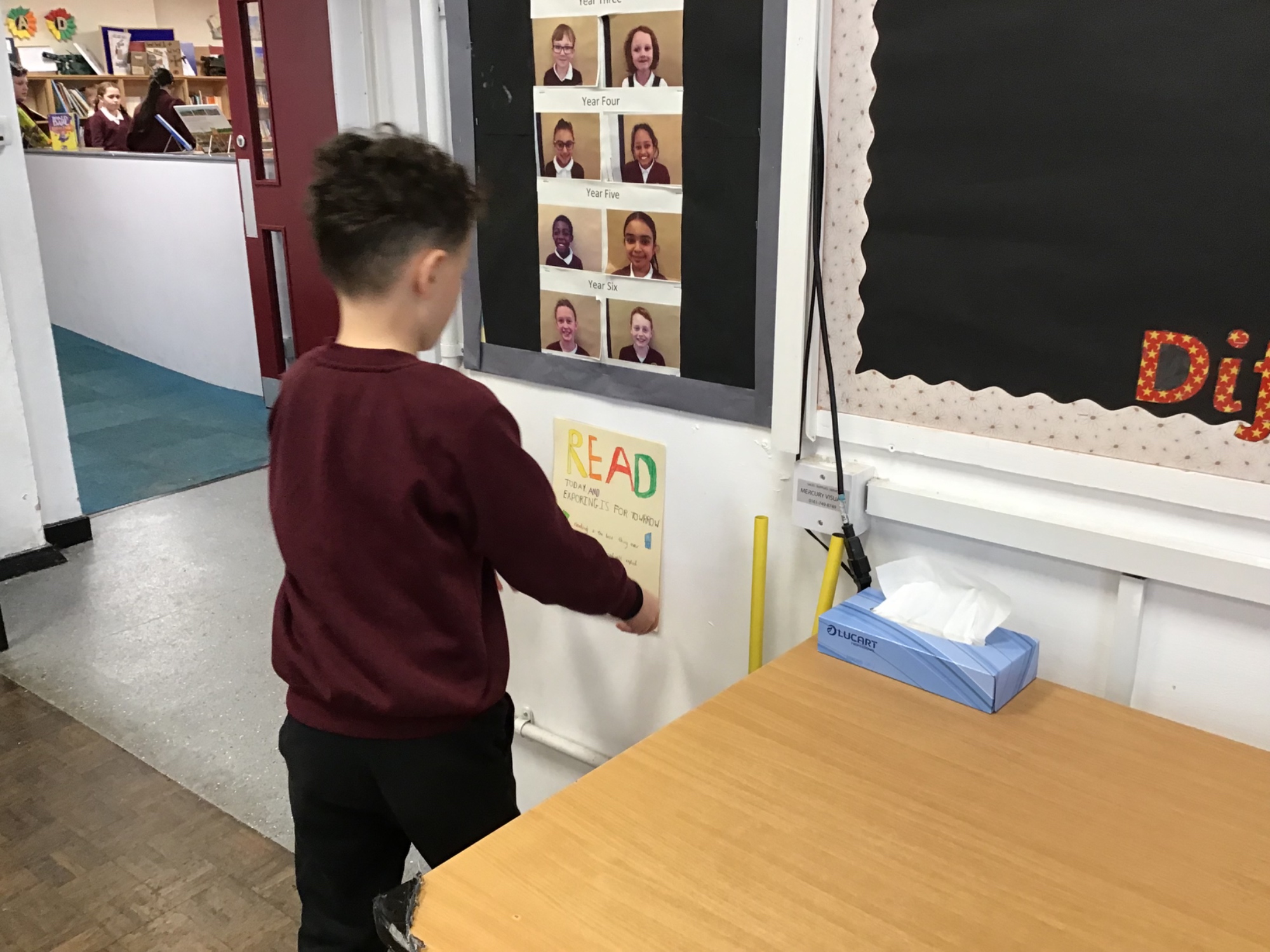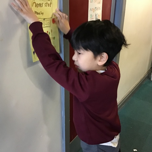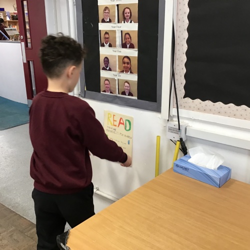 Designing and distributing posters around school to highlight the importance of reading.